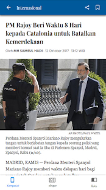 Kompas.id bekerja di Android 9.0 atau lebih tinggi. Versi aplikasi saat ini adalah 1.0.12, dan Anda hanya dapat menjalankannya dalam bahasa Inggris.